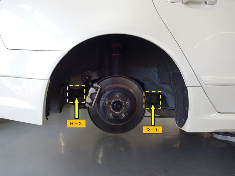 R-1・R-2の赤表記部分はボディとサブフレームの間にリジカラを挟み、