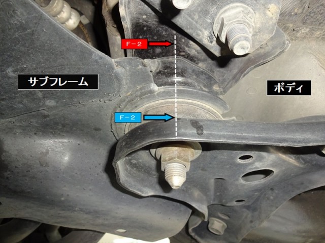 F-1、F-2の赤表記部分はボディとサブフレームの間にリジカラを挟み、