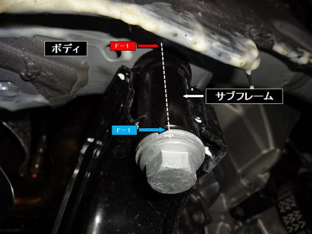 F-1・F-2の赤表記部分はボディとサブフレームの間にリジカラを挟み、