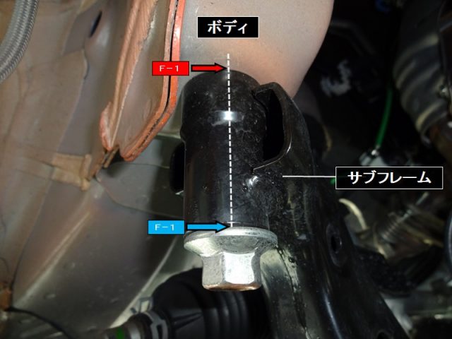 F-1、F-2の赤表記部分はボディとサブフレームの間にリジカラを挟み、
