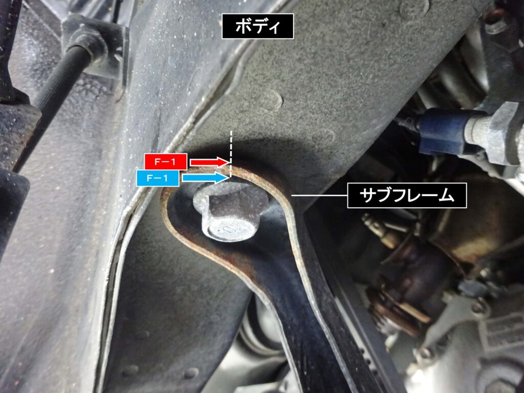 青表記部分=サブフレーム下側に設定